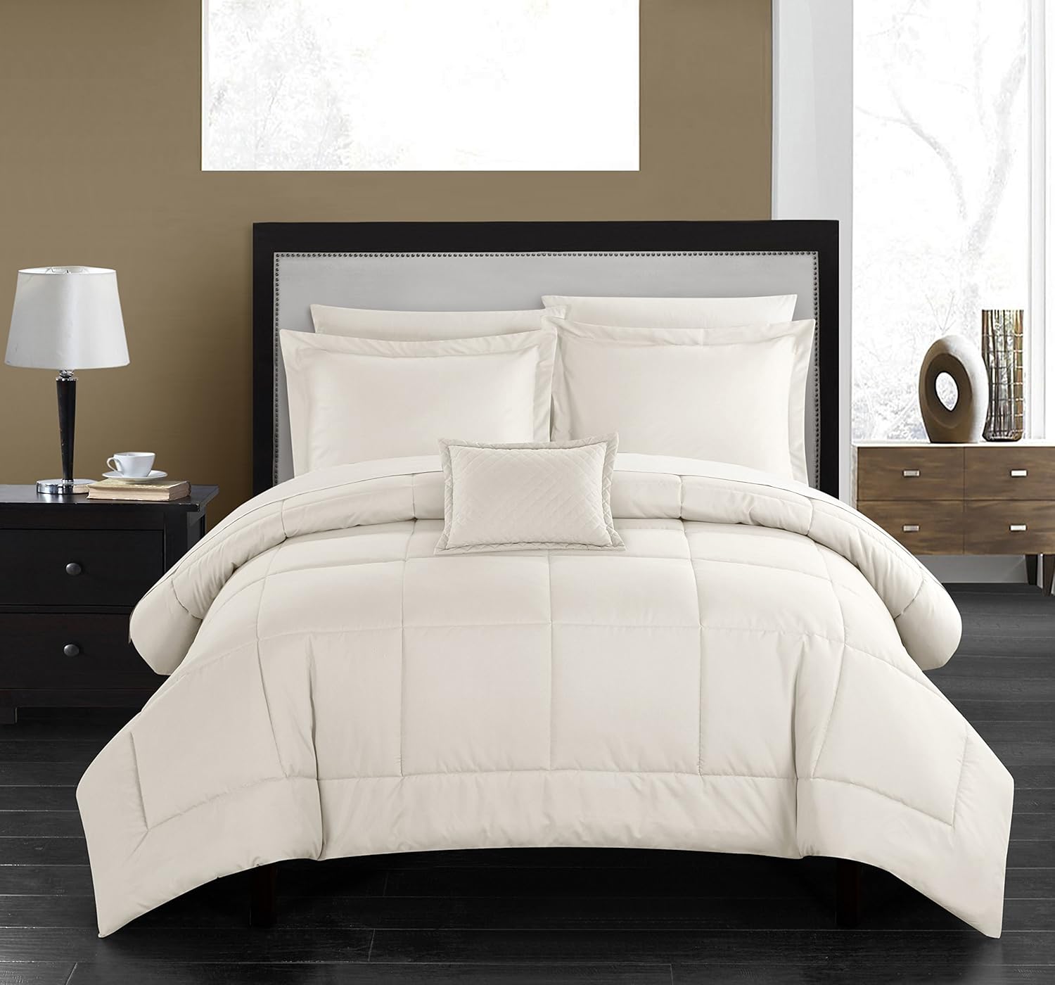 Amazon Com Chic Home Jordyn 8 Comforter Set Pieced Solid Color Stitched Design Complete Bag Bedding Sheets Decorative Pillow Shams Included Queen Beige Home Kitchen