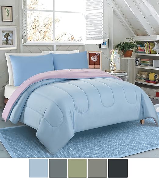 Amazon Com Lilly Skye Solid Color Microfiber Reversible Comforter Set Serenity Lupine Full Queen Home Kitchen