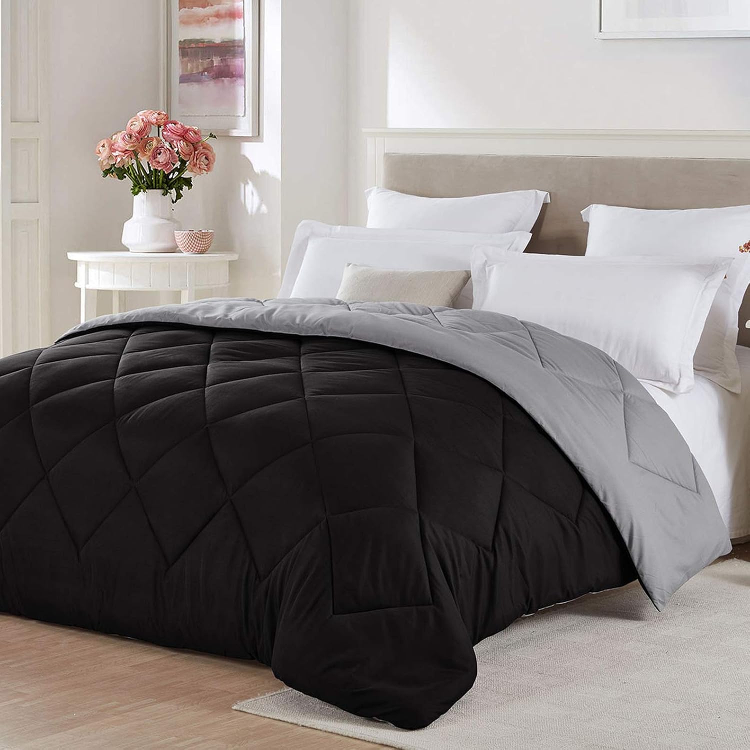 Amazon Com Seward Park Solid Reversible Comforter Hypoallergenic Plush Microfiber Fill Duvet Insert Or Stand Alone Comforter For Dorm Room Lightweight Twin Extra Long Black Gray Kitchen Dining