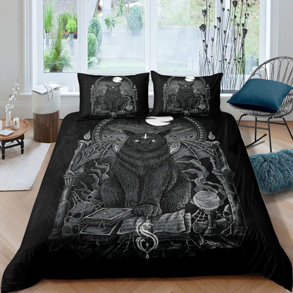 Loussiesd Magical Cat Print Comforter Cover For Kids Boys Magic Book Spell Witch Duvet Cover Halloween Theme Bedding Skull Demon Quilt Cover Child Teen Bedroom Decor 3pcs Bedcloths Super King Black Amazon Co Uk