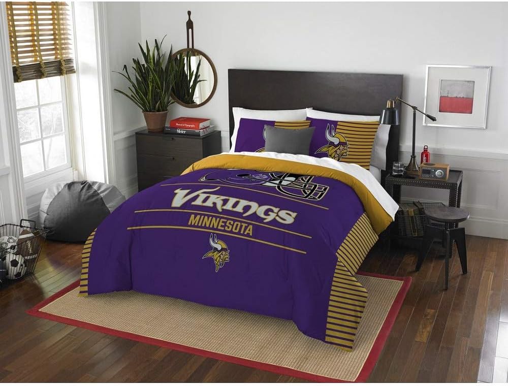 Amazon Com 3 Pc Minnesota Vikings Draft Yellow Purple Comforter Set Queen Full Merchandise Athletic Sports Motif Boy Bedding Set All Seasons Collegiate Patterned Football Themed Team Logo Spirit Reversible Shams Home Kitchen