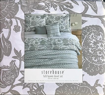 Amazon Com Floral 3pc Full Queen Cotton Duvet Set Block Print Style Gray On White Primitive Pattern Luxury Bedding Set Comforter Quilt Cover Set With Pillowcases Shams Home Kitchen