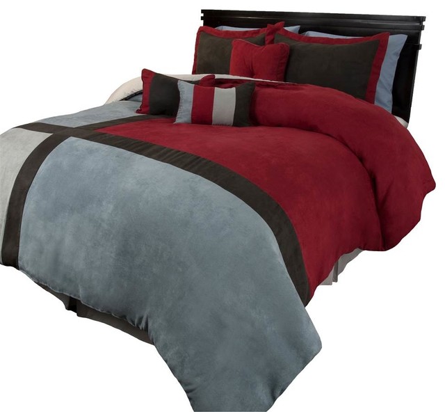 Dawn California King Size 7 Piece Micro Suede Comforter Bedding Set Soft Patchwork Oversized Bed In A Bag Black Red Walmart Com Walmart Com