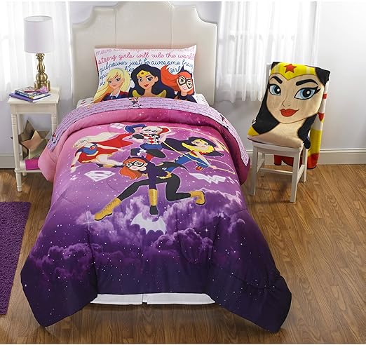 Dc Superhero Girls Cosmic Girl Reversible Twin Full Bedding Comforter Full Sheet Set Blanket And Throw Amazon Ca Home Kitchen