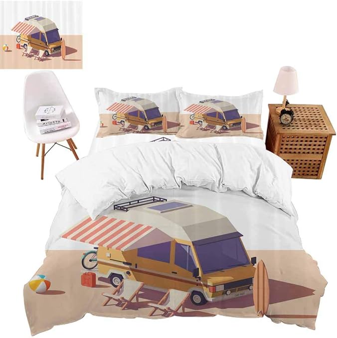 Christmas Bedding 4 Piece Duvet Cover Camper Van Chairs And Surfboard Bedding Set Cute Quilt Cover For Girls Boys Gift Queen Size No Comforter Amazon Co Uk Kitchen Home