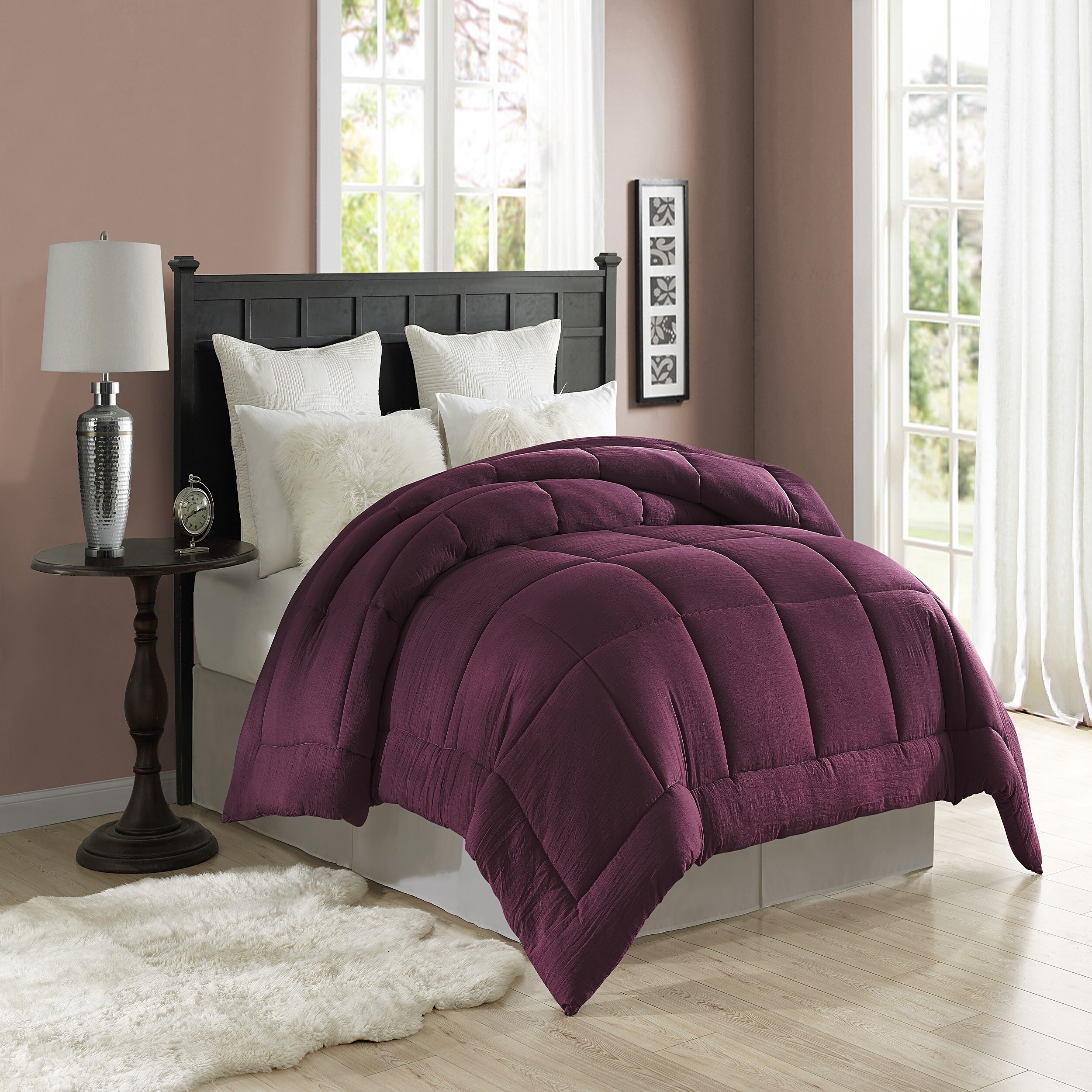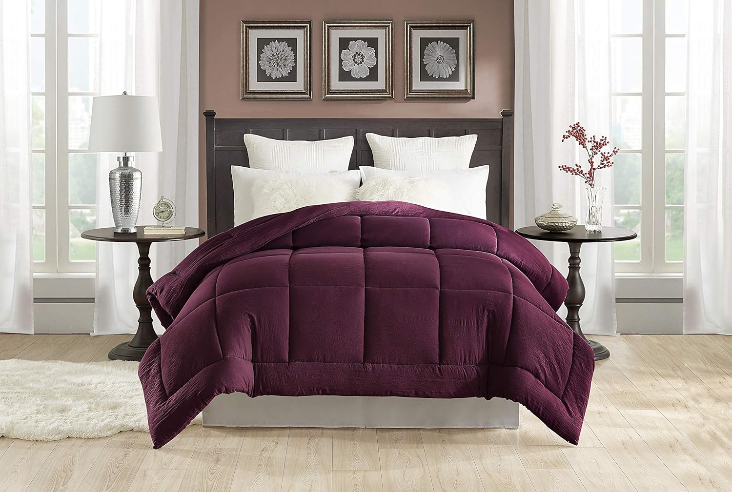 Amazon Com Tahari Home Pre Washed All Season Extra Soft Comforter Plush Siliconized Fiberfill Duvet Insert Or Stand Alone Comforter With Tabs Machine Washable Hypoallergenic King 108 X 96 Wine Kitchen Dining