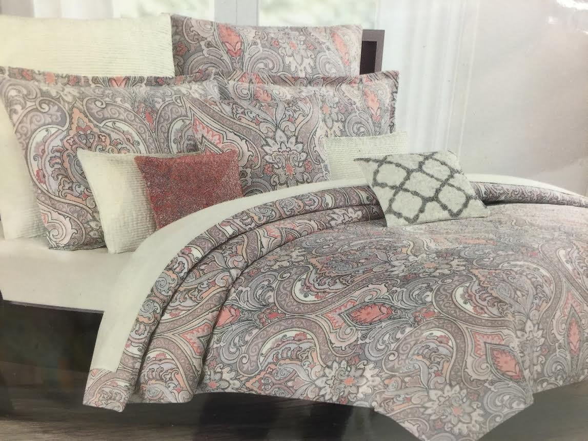 Tahari Grey Silver Paisley 6 Pieces King Comforter Set Regine Gargano