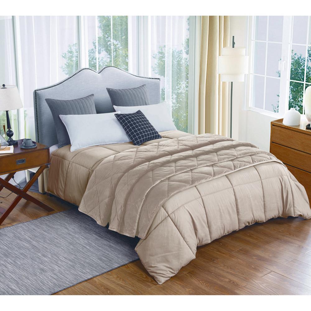 Truly Soft Cuddle Warmth Tan Full Queen Comforter Set Cs3142tnfq 1500 The Home Depot