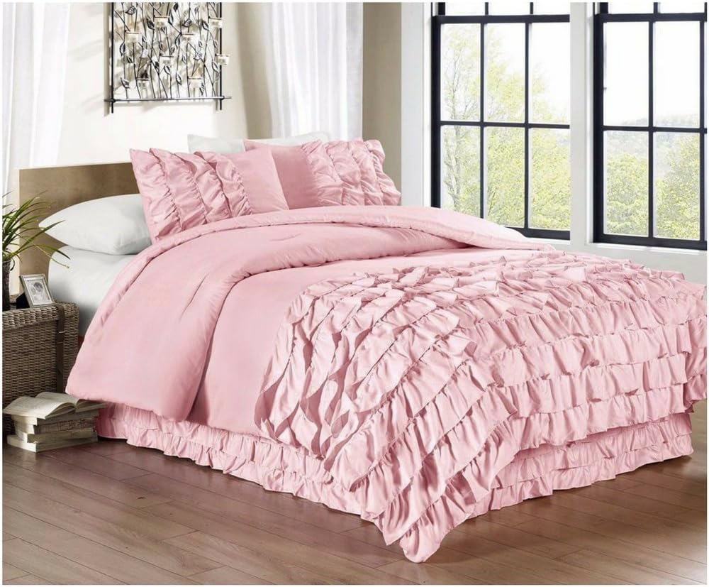Amazon Com Chesmoi Collection Elaine Ruffle Waterfall Comforter Set Twin Home Kitchen