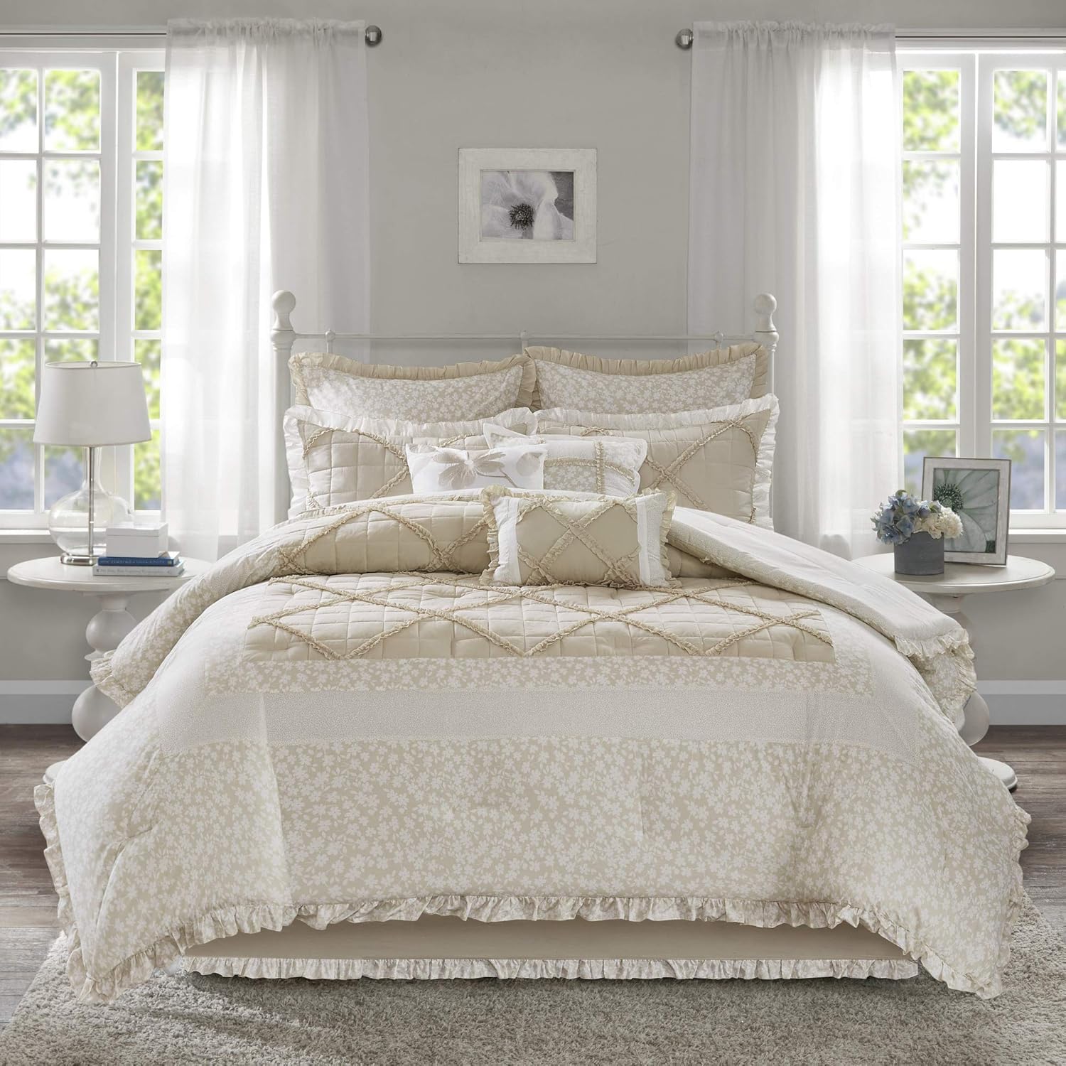 Beige Shabby Chic 3 Pc Full Queen Comforter Set Tan Full Queen In 2020 Chic Comforter Shabby Chic Comforter Chic Bedroom