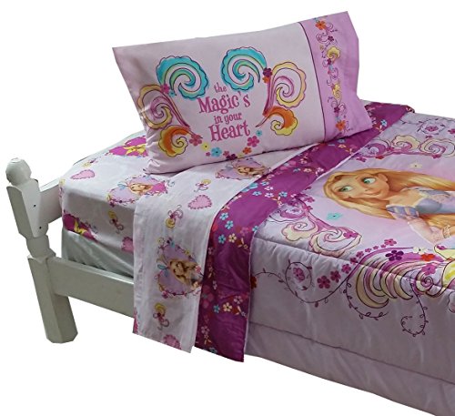 Amazon Com 4pc Disney Tangled Twin Bedding Set Rapunzel Magic Is In Your Heart Comforter And Sheet Set Home Kitchen