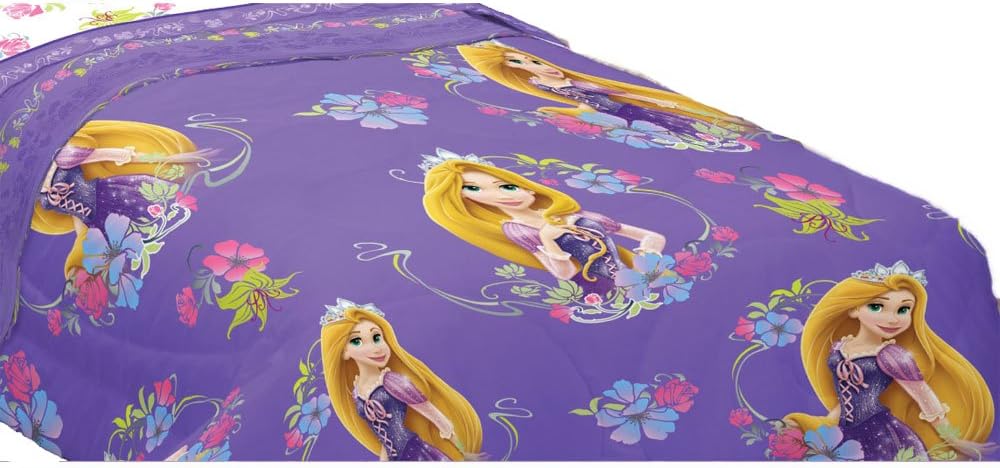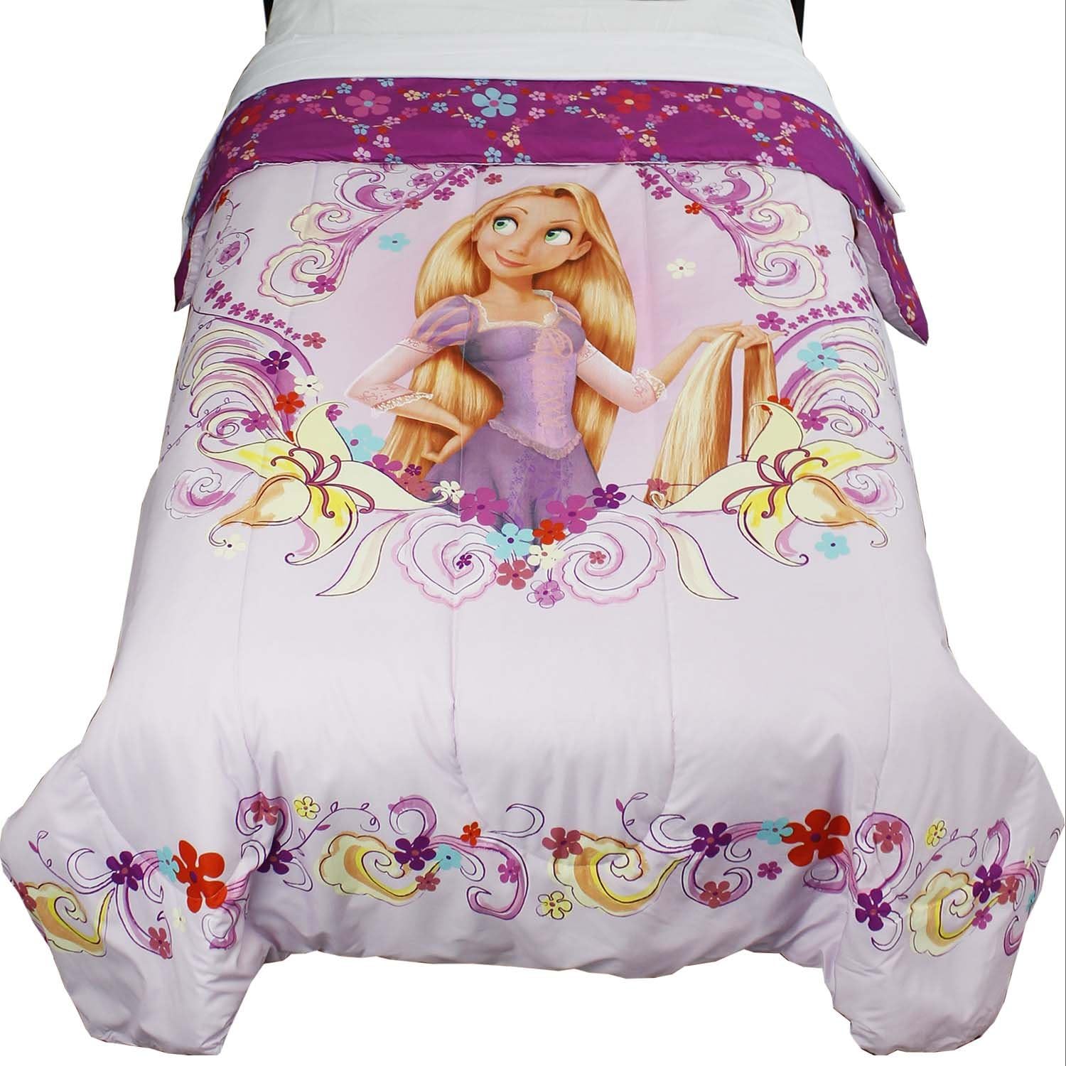 Amazon Com Disney Tangled Kids Bedding Soft Microfiber Reversible Comforter Twin 64 X 86 White Purple Home Kitchen