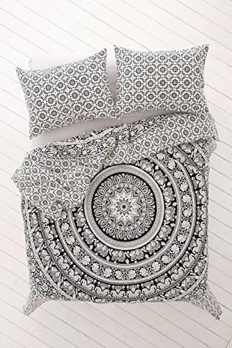 Amazon Com Indian Medallion Duvet Coverlet Tapestry Hippie Mandala Bohemian Cotton Bedding Comforter Set Traditional Print Quilt Blanket Bed Sheet Queen Bedspread With Two Pillow Cover White Black Flower Home Kitchen