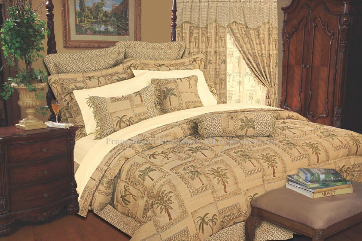 Amazon Com 9 Piece Cal King Tapestry Palm Bedding Comforter Set Home Kitchen
