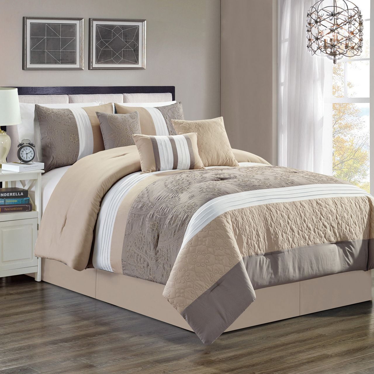 7 Piece Delano Taupe Comforter Set Walmart Com Walmart Com