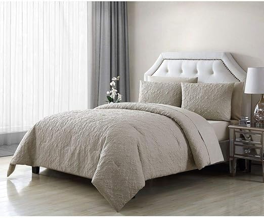 Amazon Com 7 Piece Glam Style Sand Taupe Comforter Set Stunning Intricate Embossed Textured Floral Bed In A Bag King Unique Botanical Touch Solid Color Decor Cozy Comfy Shabby Chic Bedding Sheet Set