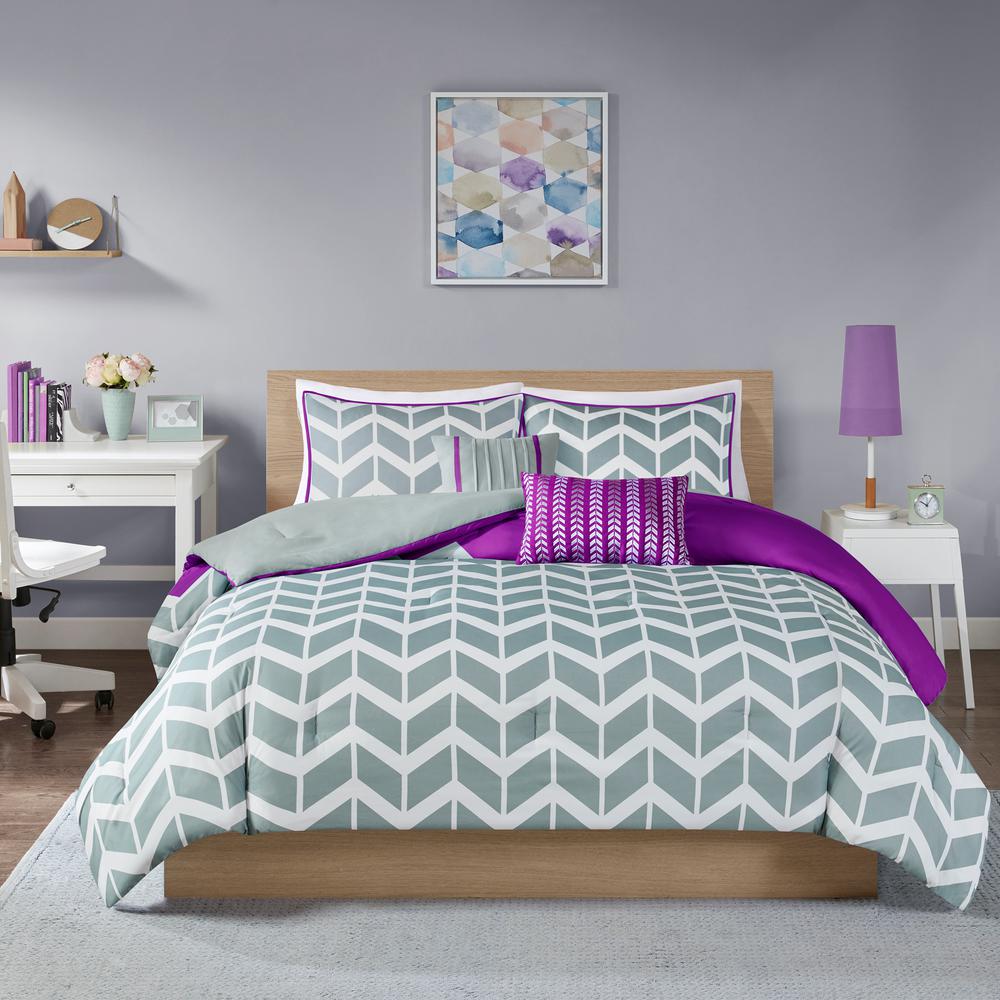 Intelligent Design Peyton 5 Piece Purple Full Queen Comforter Set Id10 622 The Home Depot