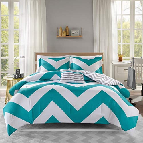 Adorable 4pc Teal Gray And White Reversible Chevron Full Queen Comforter Set Walmart Canada