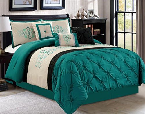 Amazon Com Empire Home Pintuck Black Teal 7 Piece Comforter Set Over Sized Pinch Pleated Bedding 20935 King Size Home Kitchen