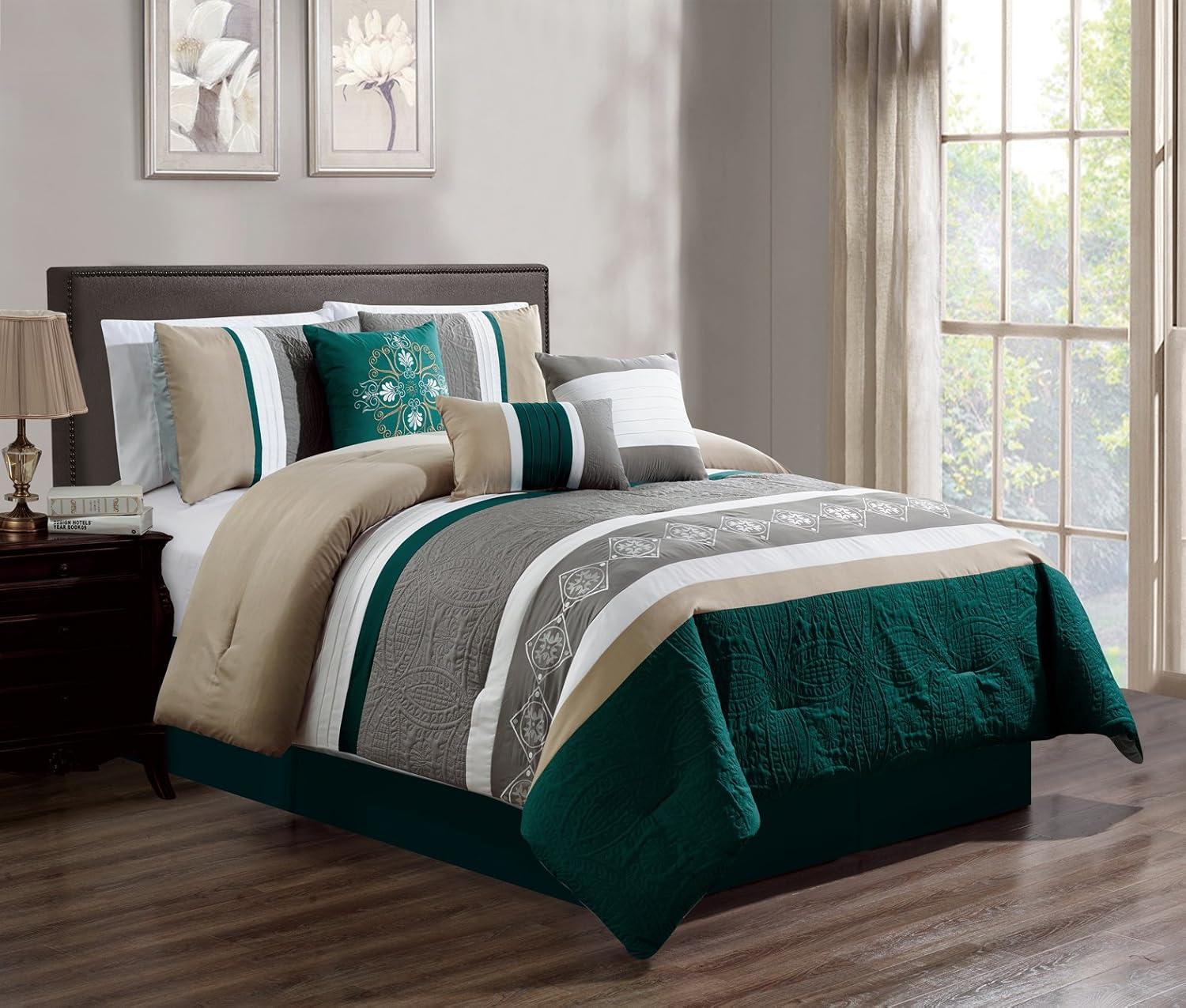 Amazon Com Luxury 7 Piece Comforter Set In A Bag Teal Cal King Home Kitchen