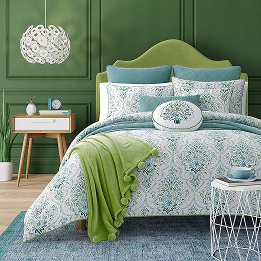 Amazon Com Lanwood Claire Cotton 10 Piece Comforter Set King Teal Floral Home Kitchen