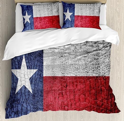 Amazon Com Ambesonne Western Duvet Cover Set Texas State Flag Painted On Crocodile Snake Skin Patriotic Emblem Image Decorative 3 Piece Bedding Set With 2 Pillow Shams Queen Size Blue Grey Red Home