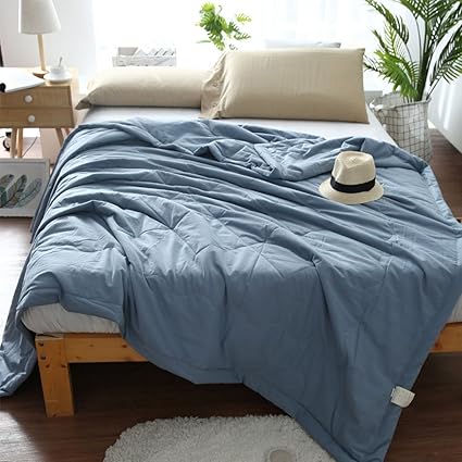 Amazon Com Uther Cotton Bed Quilt Summer Quilt Thin Comforter For Summer Or Spring Solid Color Pattern Quilt Queen Full Blue Home Kitchen