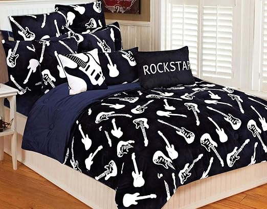Amazon Com Thro By Marlo Lorenz 5646 Guitars Printed 68 By 86 Inch Microplush Bedding Set Twin Blue White Home Kitchen