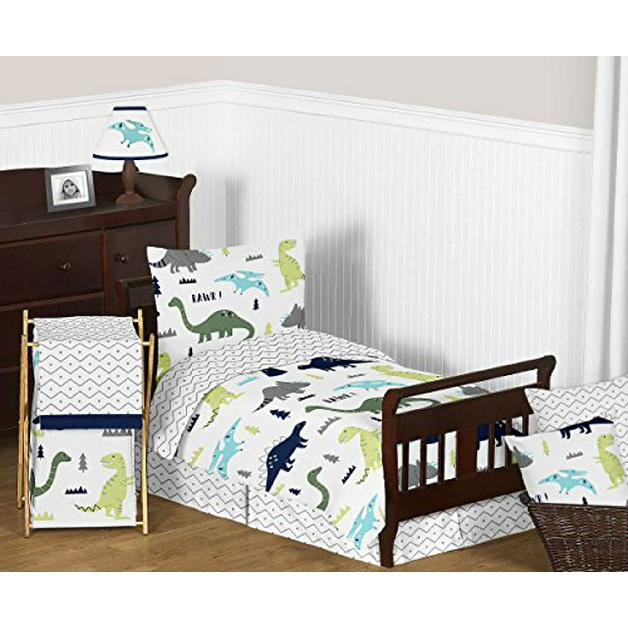 Navy Blue And Green Modern Dinosaur Boys Or Girls 5 Piece Toddler Bedding Comforter Sheet Set Walmart Canada