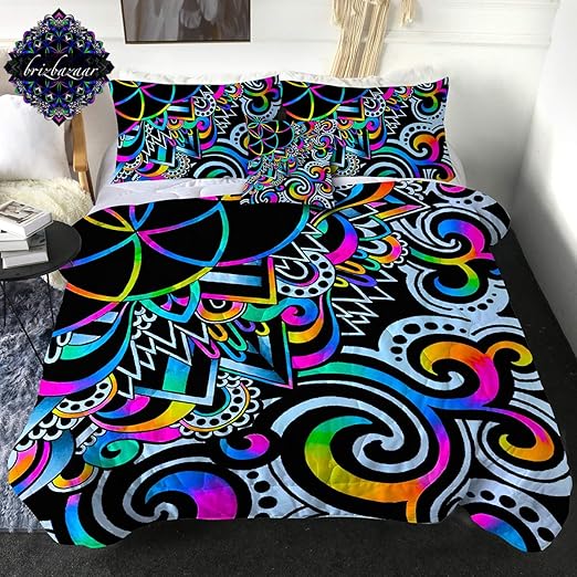 Amazon Com Sleepwish White Doodle Magic By Brizbazaar Men Full Comforter Set Colorful Neon Geometric Bedding Sets Mandala Psychedelic Reversible Comforter With 2 Pillow Shams And 1 Cushion Cover Home Kitchen