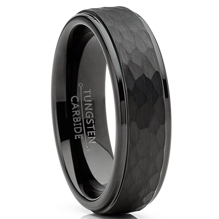 Shop Oliveti Mens Tungsten Black Wedding Band Ring Hammered Center Comfort Fit 6mm Sizes 5 13 On Sale Overstock 30860358