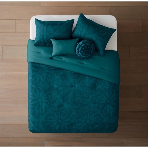 Full Queen 5pc Larkspur Floral Medallion Velvet Comforter Set Turquoise Opalhouse Target