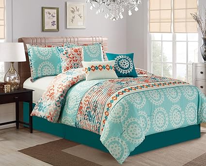 Buy Grand Linen Modern 7 Piece Embroidered Bedding Aqua Blue Turquoise Orange California Cal King Pin Tuck Comforter Set With Accent Pillows Online At Low Prices In India Amazon In
