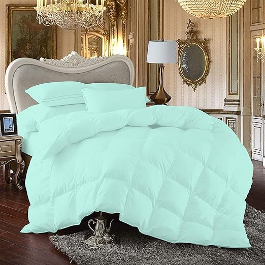 Warmkiss Home Turquoise Blue Color White Goose Down Comforter Queen 45oz 300 Blue Comforter Down Comforter Comforters