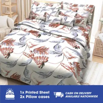 Sleep Essentials Printed Bed Sheet Set Twin Size 1 Fitted Garter Sheet 2 Pillowcases 3