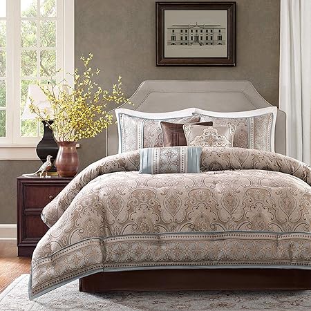 K U P 7 Pc Taupe Beautiful Comforter Set King Size Master Bedroom Ultra Soft Microfiber Bedroom Comforters Amazon Co Uk Kitchen Home