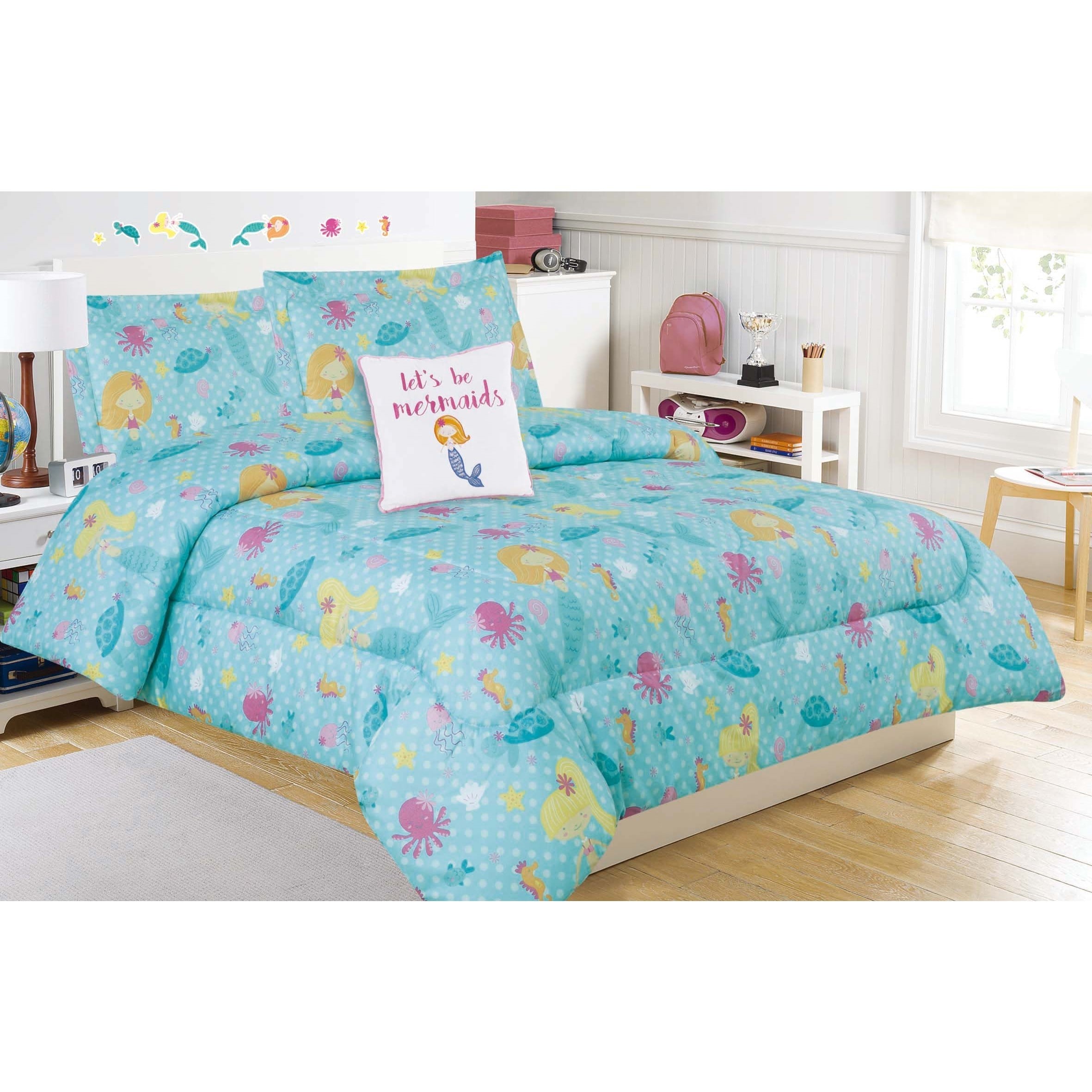 Amazon Com Better Home Style Blue Pink Green Under The Sea Life Mermaid With Crabs And Starfish Printed Fun Design 7 Piece Comforter Bedding Set For Girls Teens Bed In A Bag With