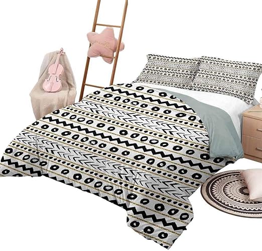 Striped Bedding Comforter Sets Abstract Primitive Figures With Cave Rocks Nature Inspired Unusual Boho Artprint Wrinkle Fade Stain Resistant Black Golden With 2 Pillow Shams Full Size Amazon Ca Home Kitchen