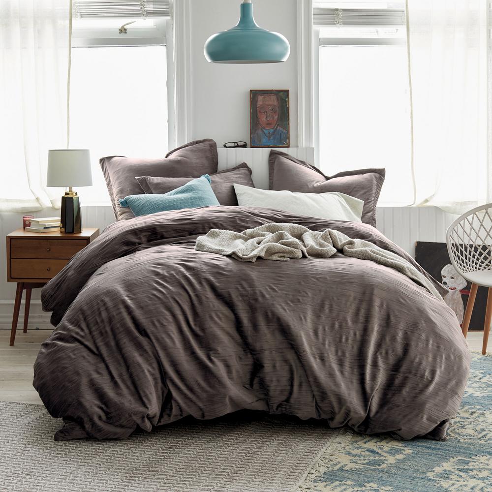 Cstudio Home By The Company Store Easton Velvet 3 Piece Cotton Blend Queen Duvet Cover Set In Taupe 40139d Q Taupe The Home Depot