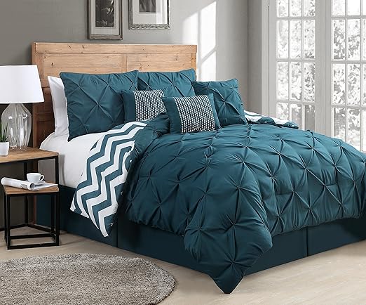 Amazon Com Avondale Manor 7 Piece Venice Pinch Pleat Comforter Set Queen Teal Home Kitchen