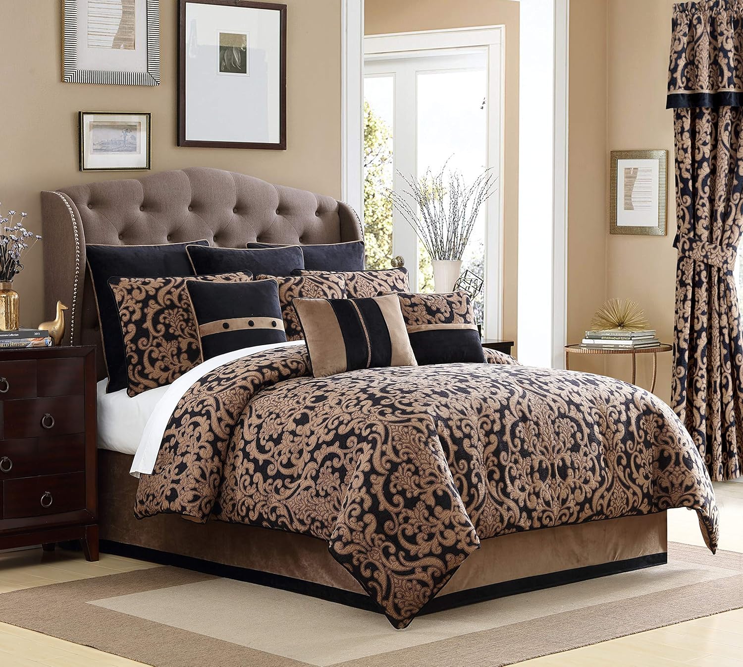 Amazon Com Veratex Chambord 4 Piece King Comforter Set Black Home Kitchen