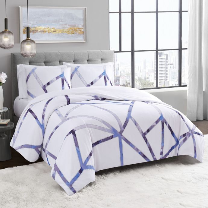 Vince Camuto Obelis 3 Piece Comforter Set In White Blue Bed Bath Beyond