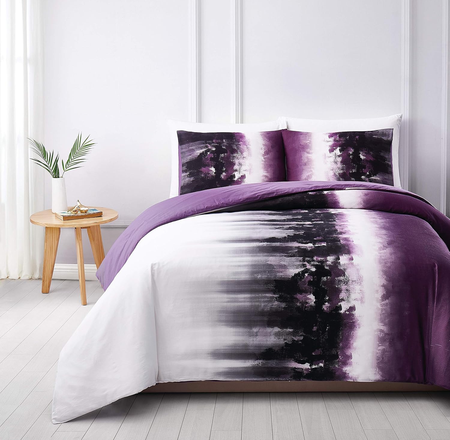 Amazon Com Vince Camuto Mirrea Comforter Set King White Purple Home Kitchen