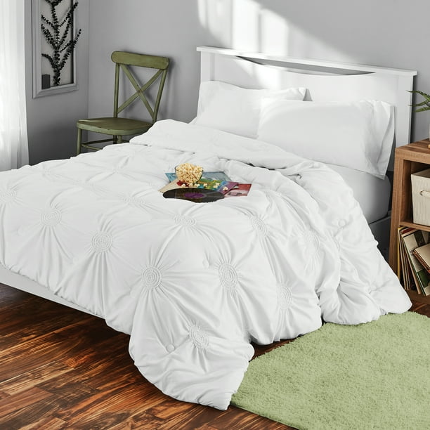 Silky Soft Pintuck Bed In A Bag 8 Piece Comforter Set Hypoallergenic Full Queen White Walmart Com Walmart Com