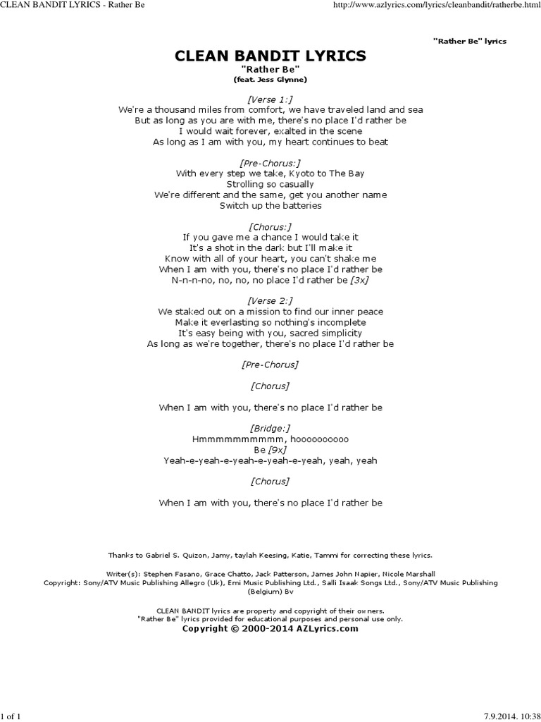 Clean Bandit Lyrics Rather Be