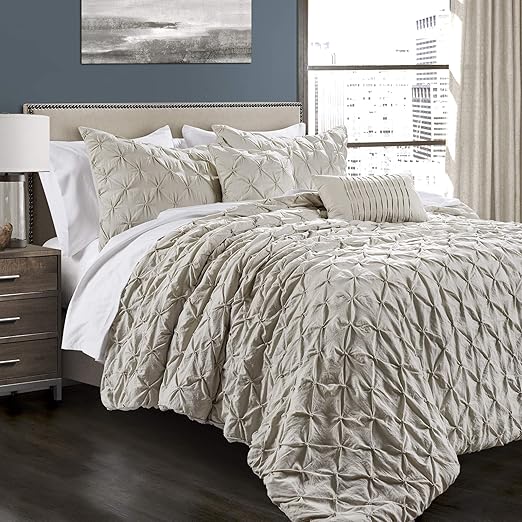 Amazon Com Lush Decor Wheat Ravello Shabby Chic Style Pintuck 5 Piece Comforter Set With Pillow Shams King Home Kitchen