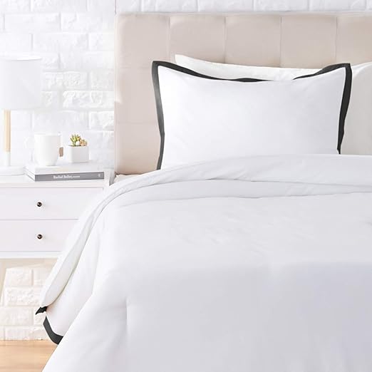 Amazon Com Amazonbasics Contrast Trim Comforter Set Premium Soft Easy Wash Microfiber Twin Twin Xl White With Black Trim Home Kitchen