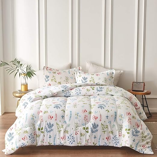 Amazon Com Uozzi Bedding White Comforter Set Queen Size Green Blue Leaves With Red Flowers Print Reversible Down Alternative 800 Tc Kids Adult Duvet Sets 1 Microfiber Comforter With 2 Pillow Shams Home
