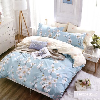 Luxury Sky Blue Comforter Set White Floral Leaves Flowers Painting 100 Cotton Fabric With Soft Microfiber Shopee Philippines