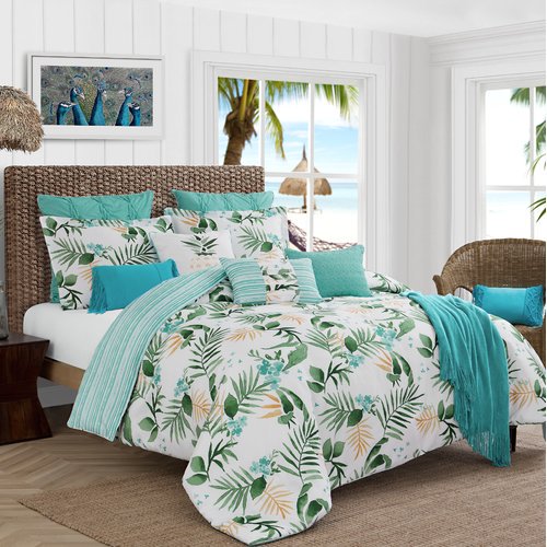 Lush Fronds Palm Leaf Tropical Mini Comforter Set
